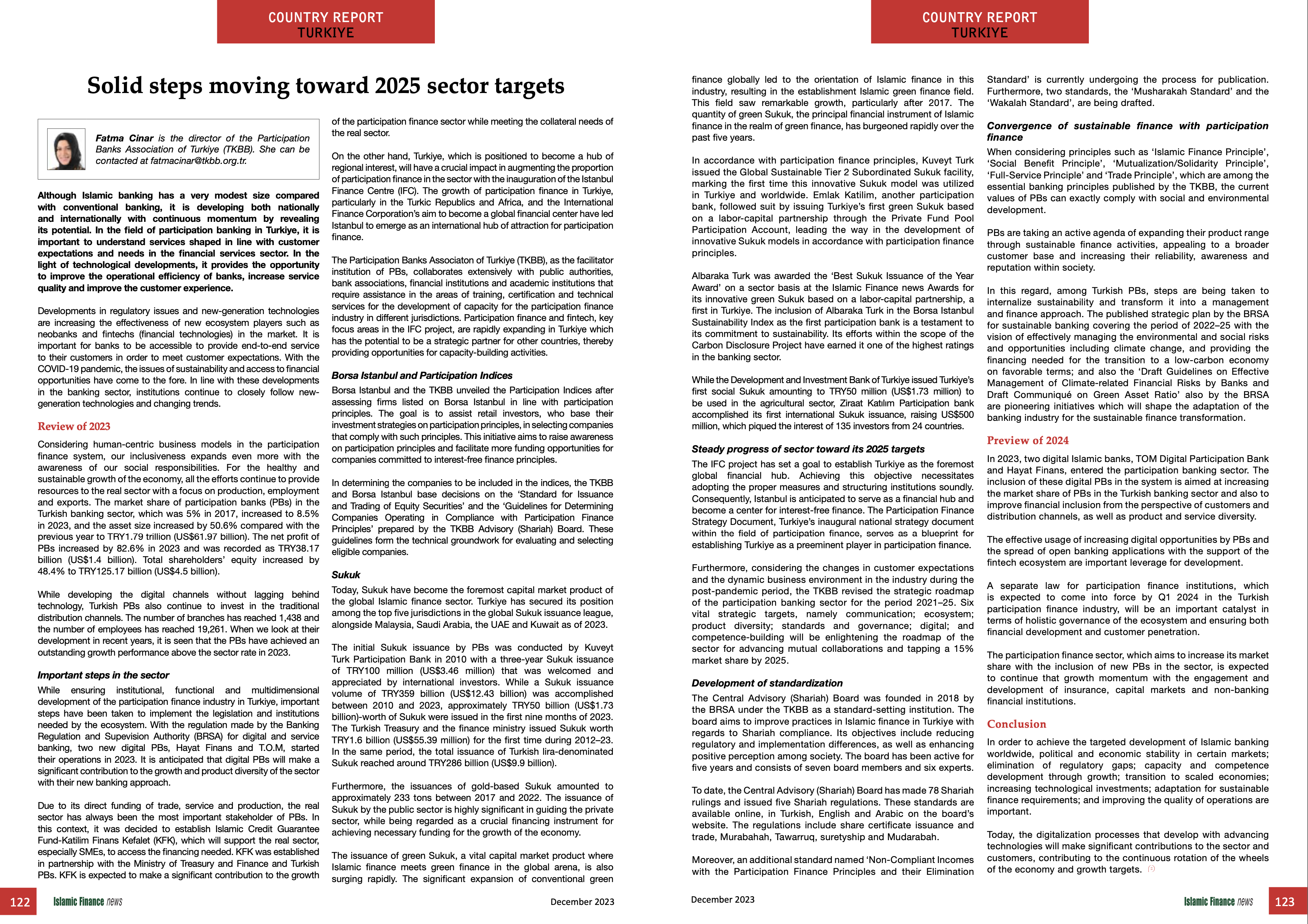 Artan dijital imkanların katılım bankaları tarafından etkin bir şekilde kullanılması ve fintech ekosisteminin desteğiyle açık bankacılık uygulamalarının yaygınlaşması gelişim için önemli bir kaldıraçtır.Türkiye katılım finans sektöründe 2024 yılının ilk çeyreğinde yürürlüğe girmesi beklenen katılım finans kurumları için ayrı bir kanun, ekosistemin bütüncül bir şekilde yönetilmesi ve hem finansal gelişimin hem de müşteri penetrasyonunun sağlanması açısından önemli bir katalizör olacaktır.